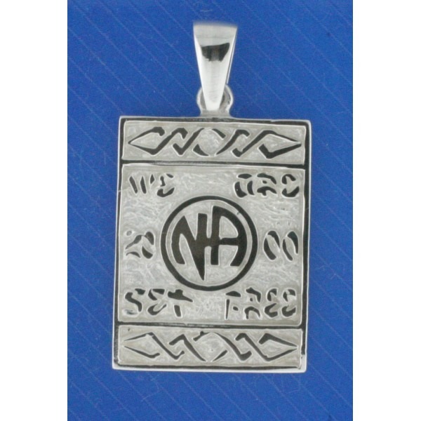 Rectangular silver NA set free pendant. The NA logo is front and center with the “We are set free, 2000” mantra in this silver pendant. Fits most small to medium-sized chains.